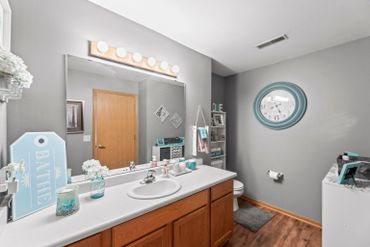 Peaceful living awaits in this quiet corner of Allenton featuring highly desirable SLINGER SCHOOL DISTRICT! This UPPER 1,447 sq ft condo has its own private entrance with *attached* 2 car garage. Open concept living is airy and open with tons of natural light and vaulted great room. Yet a cozy feeling envelopes and invites you to love living here - particularly, to enjoy the gas fireplace and natural views out the floor to ceiling glass & patio door leading to the private balcony calling for morning coffee & conversations with friends. Large dining/flex space has room for extra possibilities and, with the laundry/mud/cubby space just off this room, perhaps the coat closet could even convert to a desk nook or other creative pantry storage. Opening to the kitchen (door/drawer handles to be installed!) you'll enjoy everyday living as well as entertaining with the living room/outdoor views - as well as the eat-up/breakfast bar counter space. Bedroom #2 features double closets and is just across from the HUGE main bath. Master Bedroom also has double closets, but one is extra deep/walk-in. Plus, Master En-Suite has its own, 2ND FULL BATH! Calming views from each bedroom and expected to be move-in ready for 12/1/25 with potential flexibility on date. Easy freeway access with walkable restaurants and a clear shot to all the shopping/grocery & more West Bend has to offer! *FURRY FAMILY!!! = Small dog, under 30#, or cat will be considered.* Don't miss your chance to secure this rare opening - and just in time before the winter season!